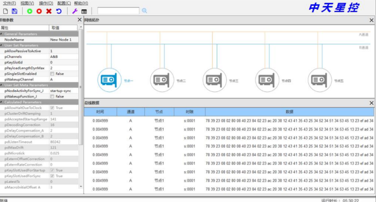 中天星控目前已建立了(le)一(yī)整套包含軟硬件(jiàn)的(de)FlexRay總線系列産品,目前各類産品在多(duō)個(gè)單位的(de)FlexRay總線産品開(kāi)發、仿真、測試等任務中得(de)到(dào)應用(yòng)。FlexRay總線系列産品目前包括:總線設計(jì)軟件(jiàn)FlexRay Plan、總線記錄分(fēn)析軟件(jiàn)FlexRay MonitorPCI/CPCI/USB總線通(tōng)信模塊、PCI/CPCI/USB總線記錄模塊、TTL UARTFlexRay模塊(國(guó)産化(huà)率可(kě)達100%)、以太網轉FlexRay模塊FlexRay Star有(yǒu)源星型單元,同時(shí)公司正在研發更豐富的(de)軟件(jiàn)、總線故障注入、總線組網配件(jiàn)、總線電(diàn)纜等産品。